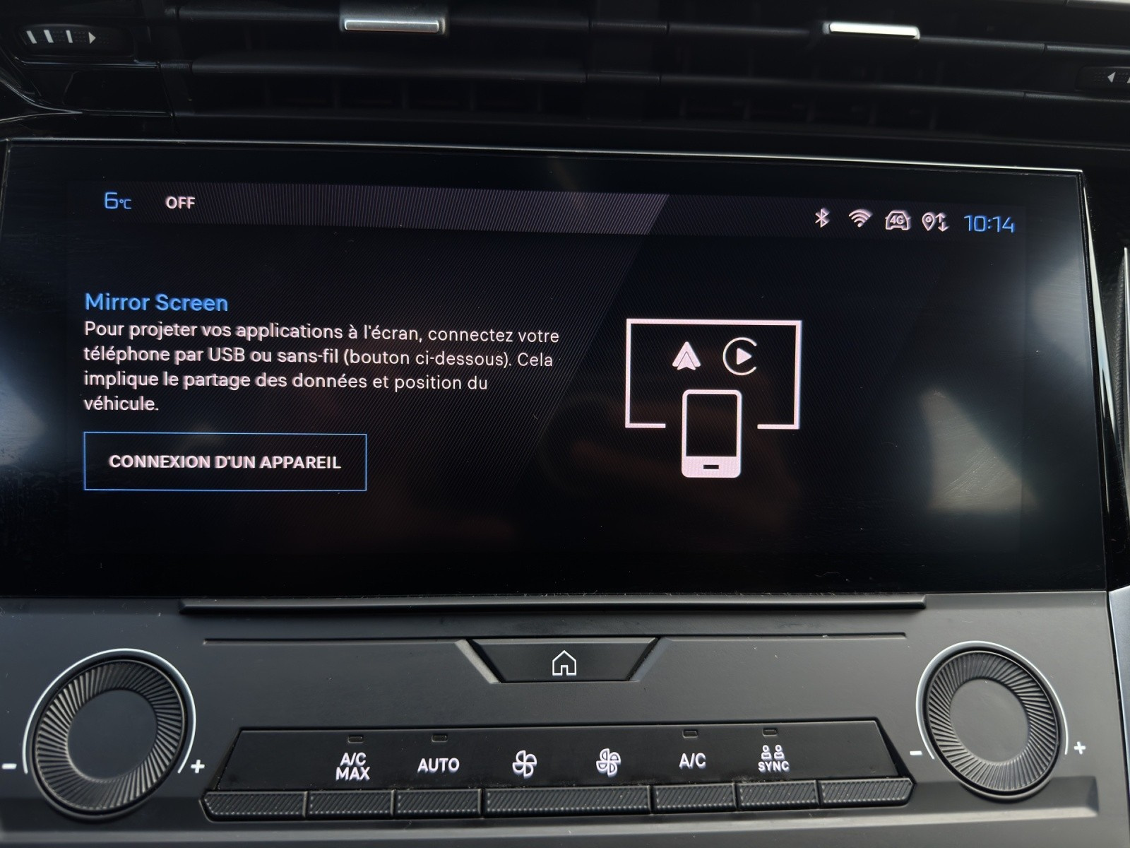 Fonction Mirror Screen (Apple CarPlay/Android Auto) sans fil